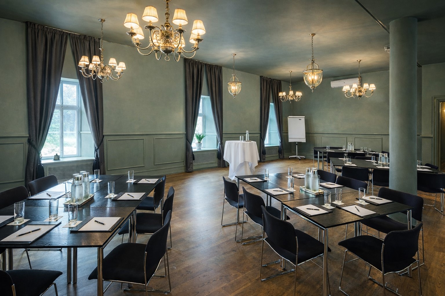 Flipover, papir og skriveredskaber til rådighed